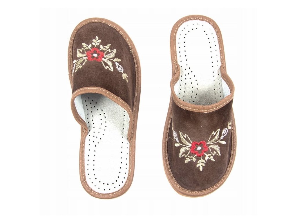 Tieto dámske kožené papuče v hnedej farbe sú ideálnym riešením pre ženy, ktoré hľadajú ľahké a pohodlné domáce obutie počas teplejších dní. Vďaka nezateplenej vnútornej časti sú vhodné na leto, jar, alebo do dobre vykúrenej domácnosti počas celého roka.