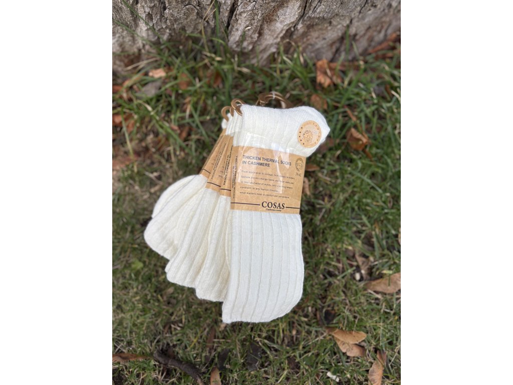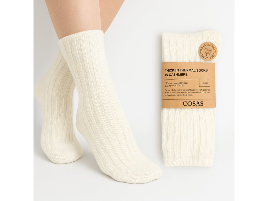Doprajte si ten najvyšší komfort počas zimy s našimi dámskymi termo ponožkami z kašmíru v elegantnej bielej farbe. Luxusné zloženie 95 % kašmír a 5 % spandex zaručuje, že každý krok bude hrejivý, jemný a mimoriadne pohodlný. Kašmír patrí medzi najvzácnejšie prírodné materiály na svete – je extrémne mäkký, hebký na dotyk a výborne udržiava teplo, pričom zostáva priedušný. Vďaka pridaniu spandexu sú ponožky pružné, odolné a perfektne sa prispôsobia chodidlám, takže si zachovávajú tvar aj pri pravidelnom nosení.