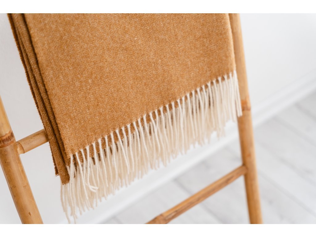 Luxe deken van merinowol 140 × 200 cm – camel| 100% merinowol