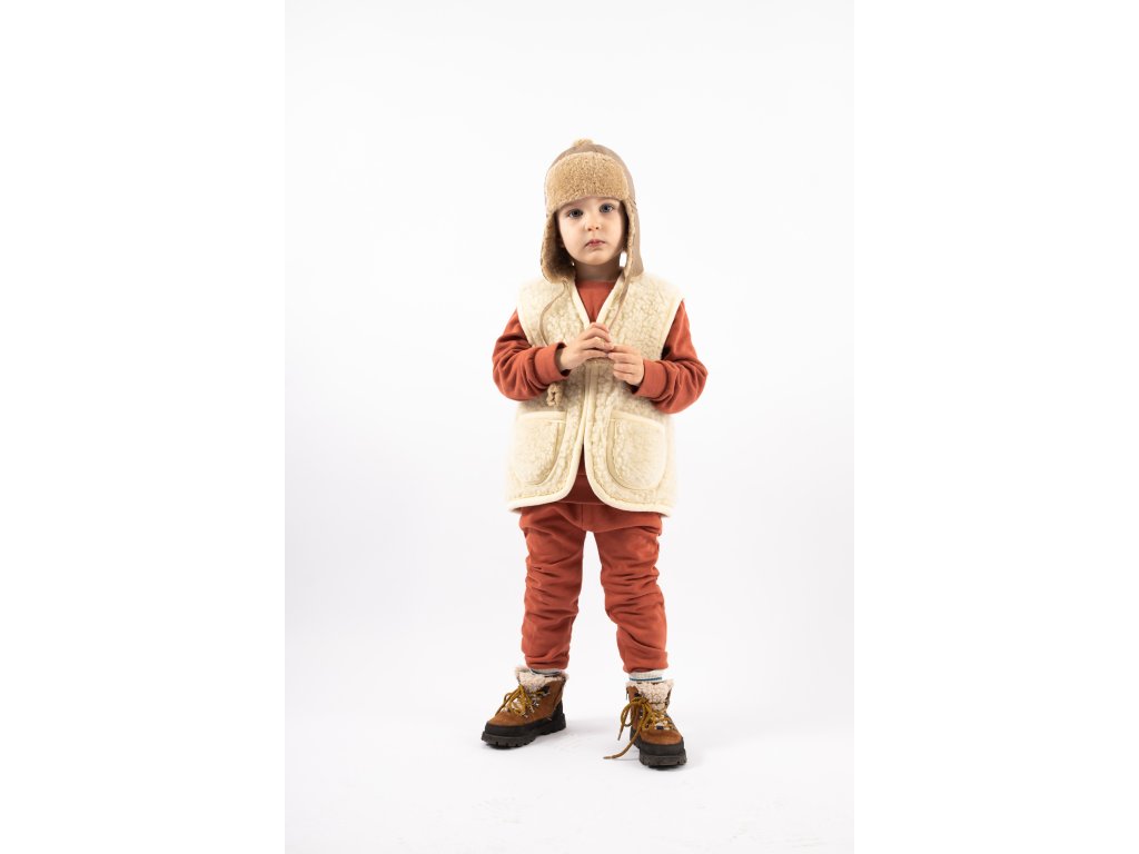 Detská čiapka z ovčej vlny je ručne šitá zo 100 % ovčej kožušiny. Pri jej výrobe nie sú použité žiadne chemické prostriedky, takže ide o kvalitný prírodný materiál. Ručná práca sa odráža na precíznom prevedení každého detailu.