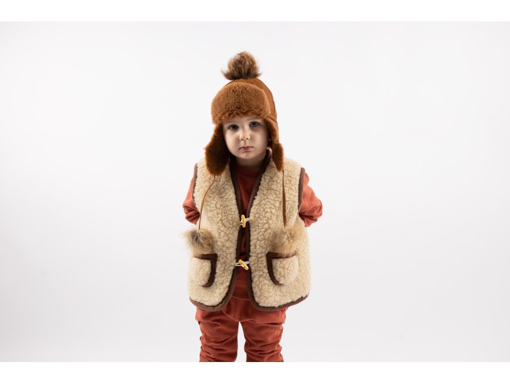Detská čiapka z ovčej vlny je ručne šitá zo 100 % ovčej kožušiny. Pri jej výrobe nie sú použité žiadne chemické prostriedky, takže ide o kvalitný prírodný materiál. Ručná práca sa odráža na precíznom prevedení každého detailu.