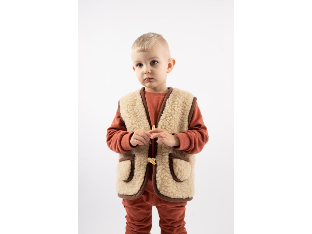 Hrejivá vesta z ovčej vlny vhodná pre chlapcov aj dievčata.