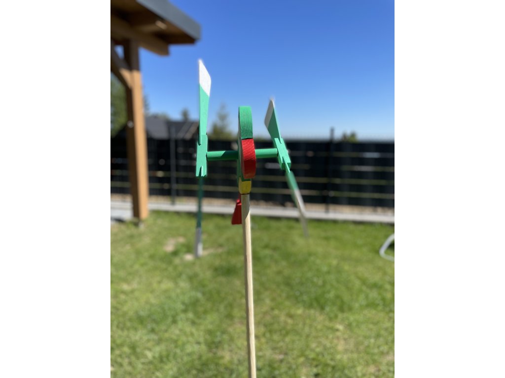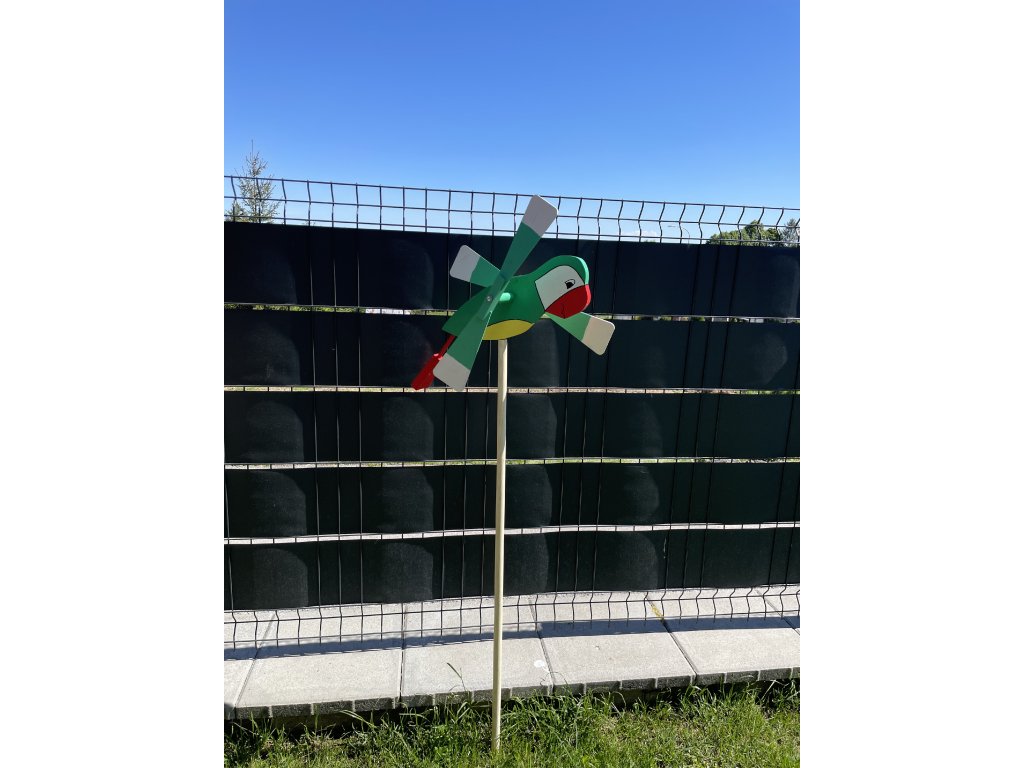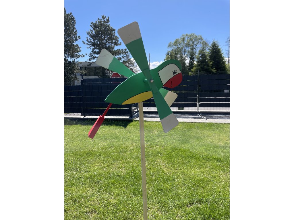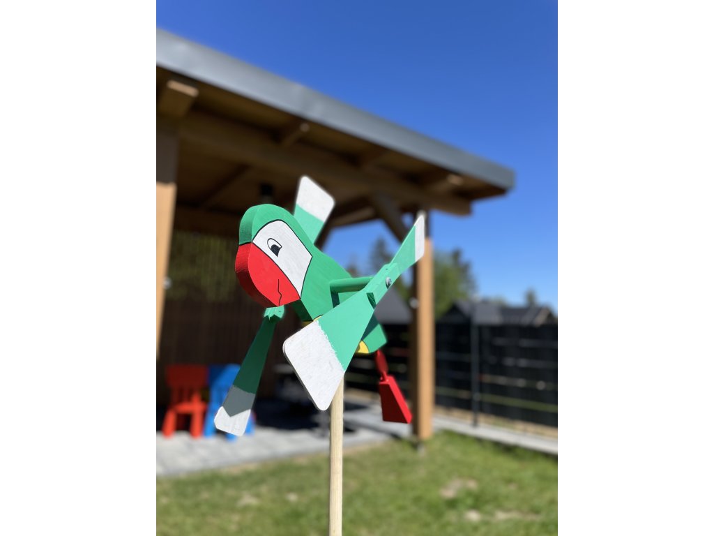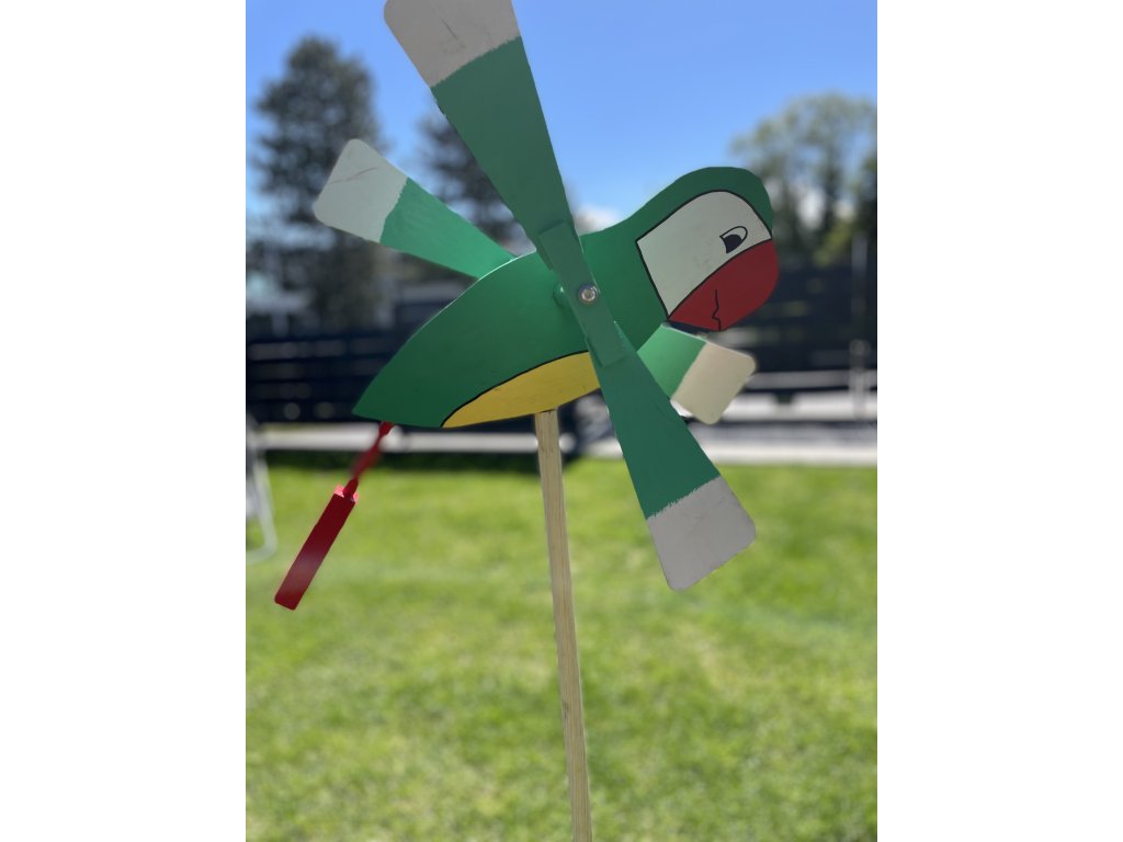 Drevená vrtuľka Papagáj – Farebný záhradný doplnok s pohyblivými krídlami