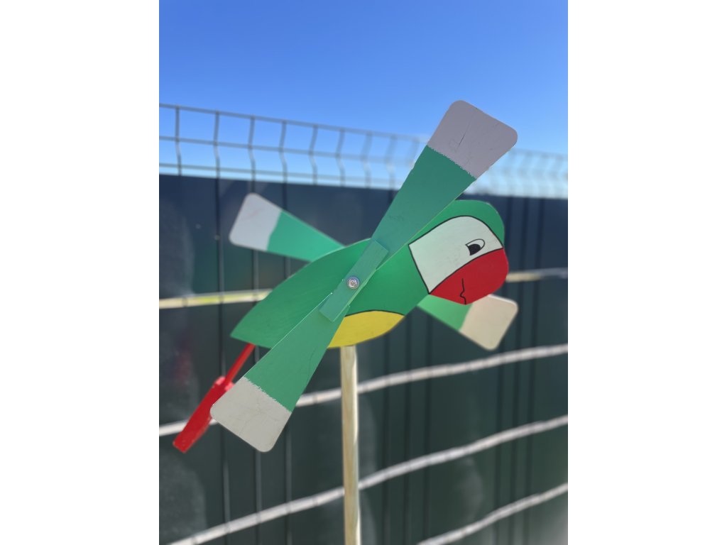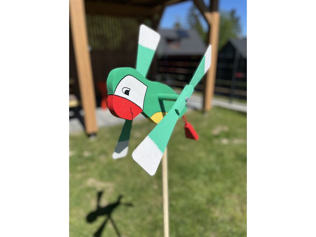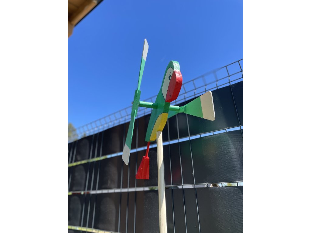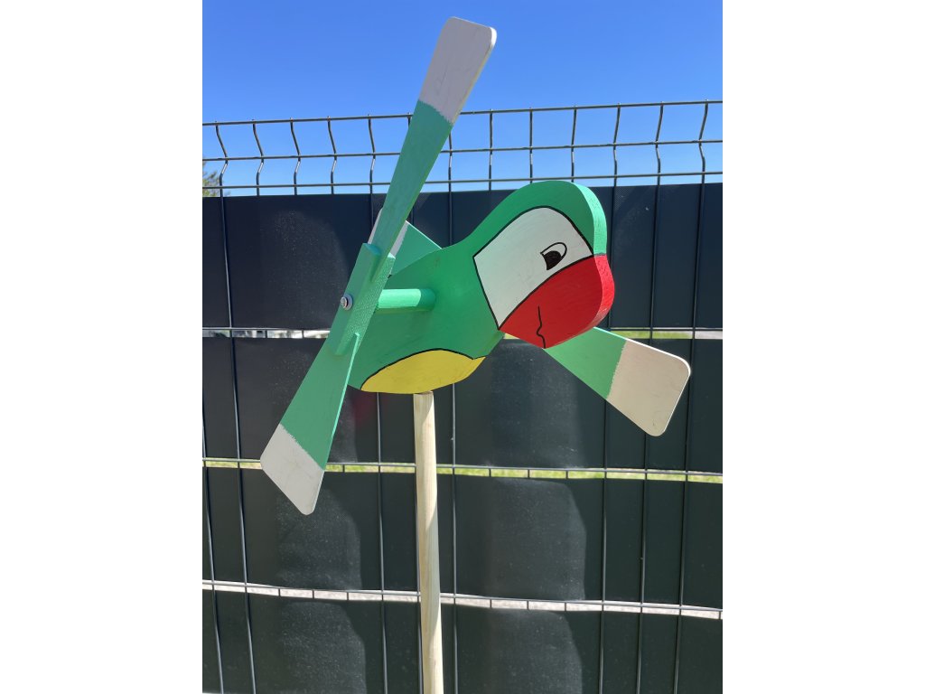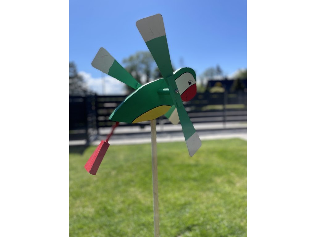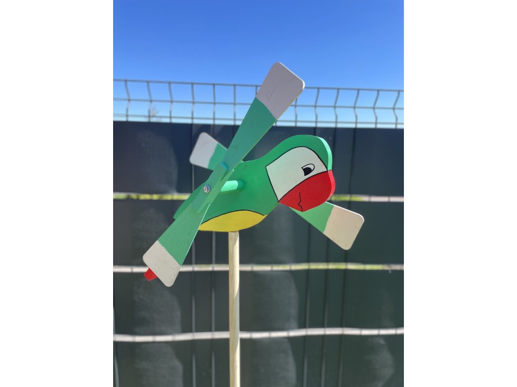Drevená vrtuľka Papagáj