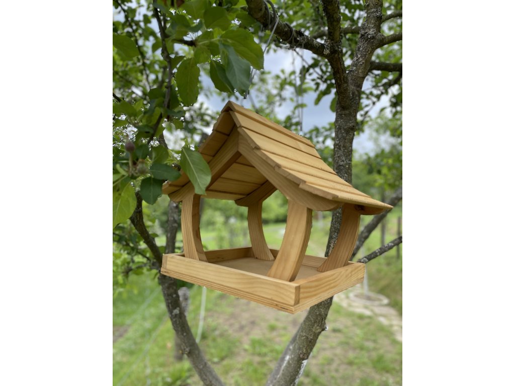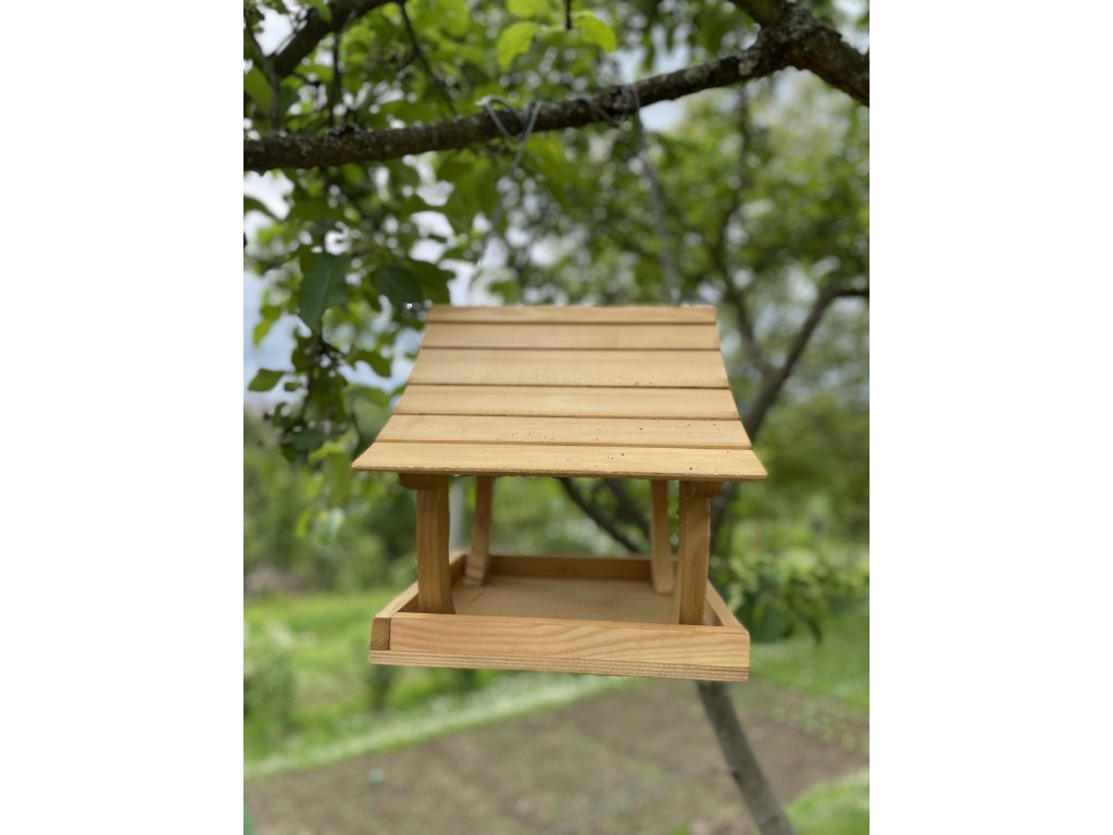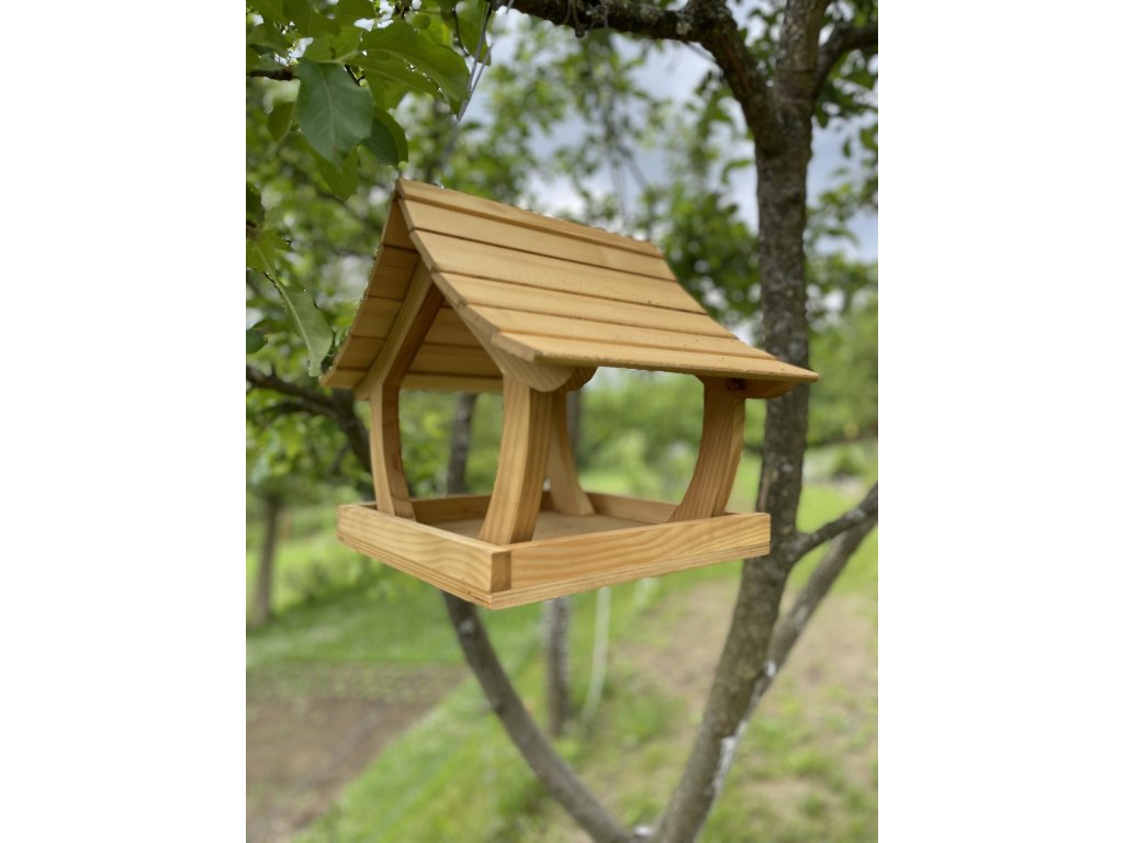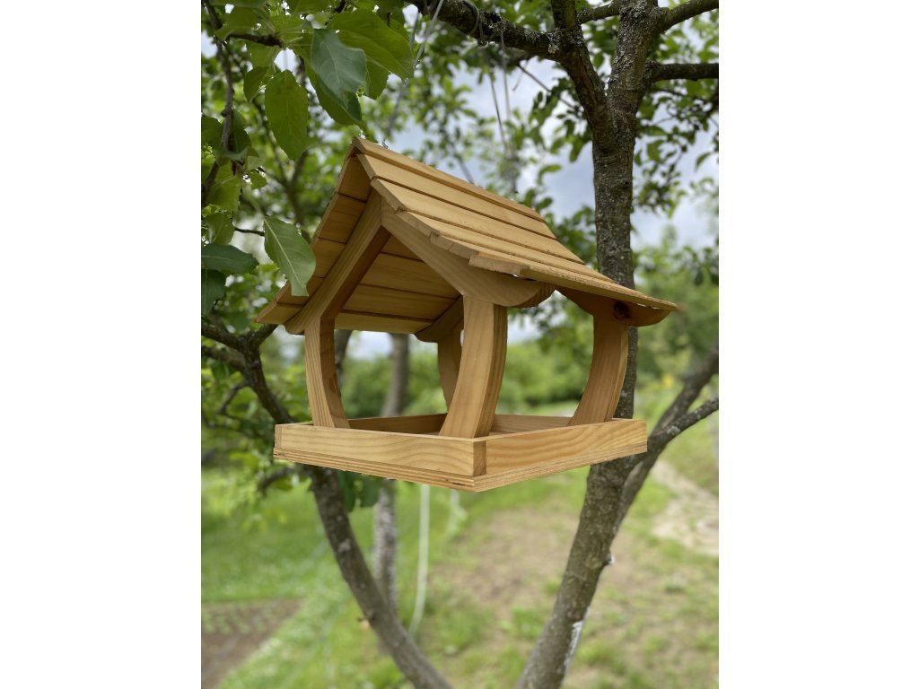 Svetlé drevené kŕmidlo pre vtáky je vyrobené z kvalitného smrekového dreva, ktoré vyniká prírodným vzhľadom, odolnosťou a stabilitou. Je navrhnuté tak, aby ochránilo krmivo pred dažďom a snehom a zároveň umožnilo jednoduchý prístup vtáčikom zo všetkých strán.