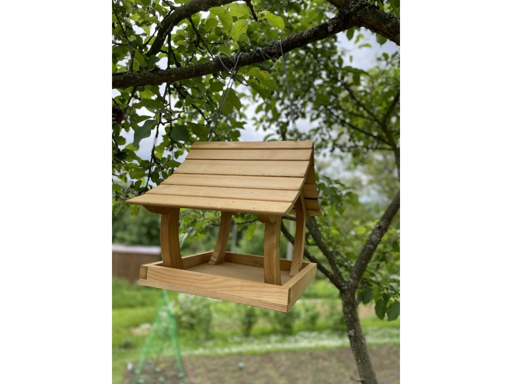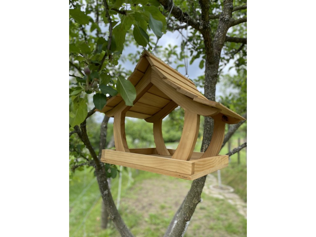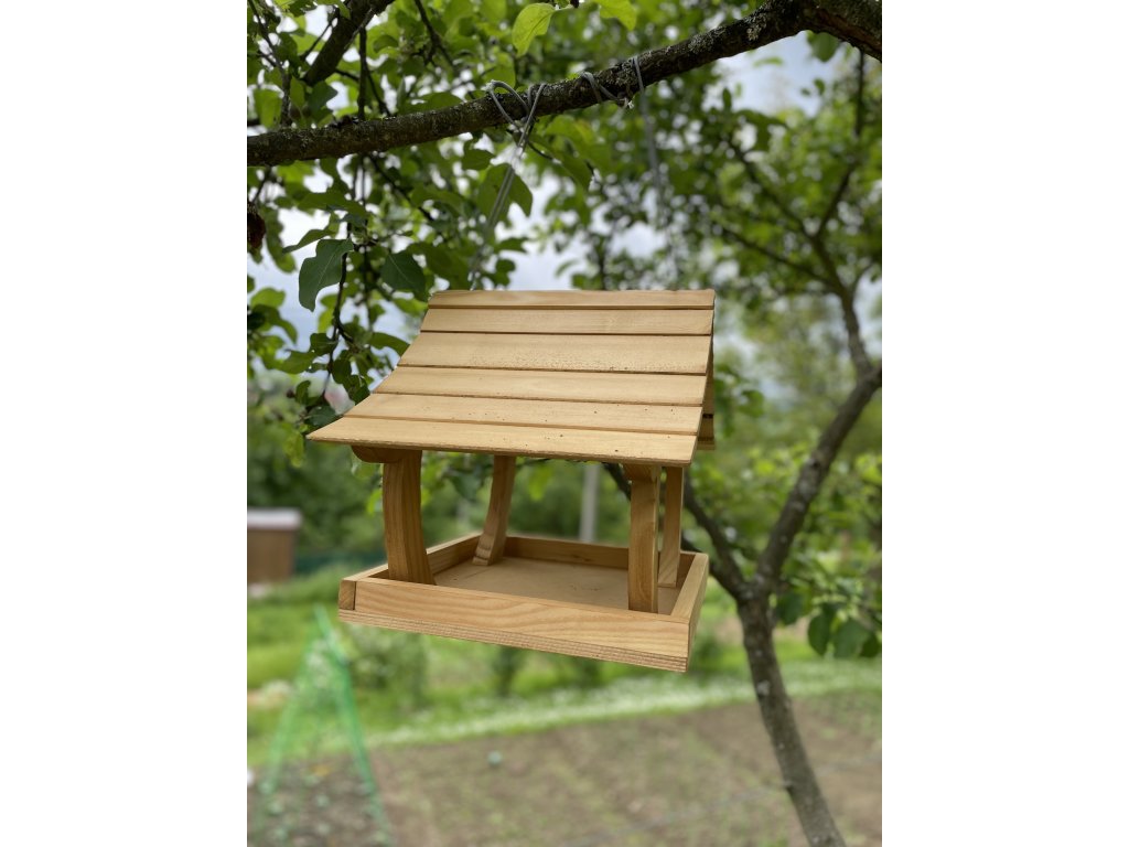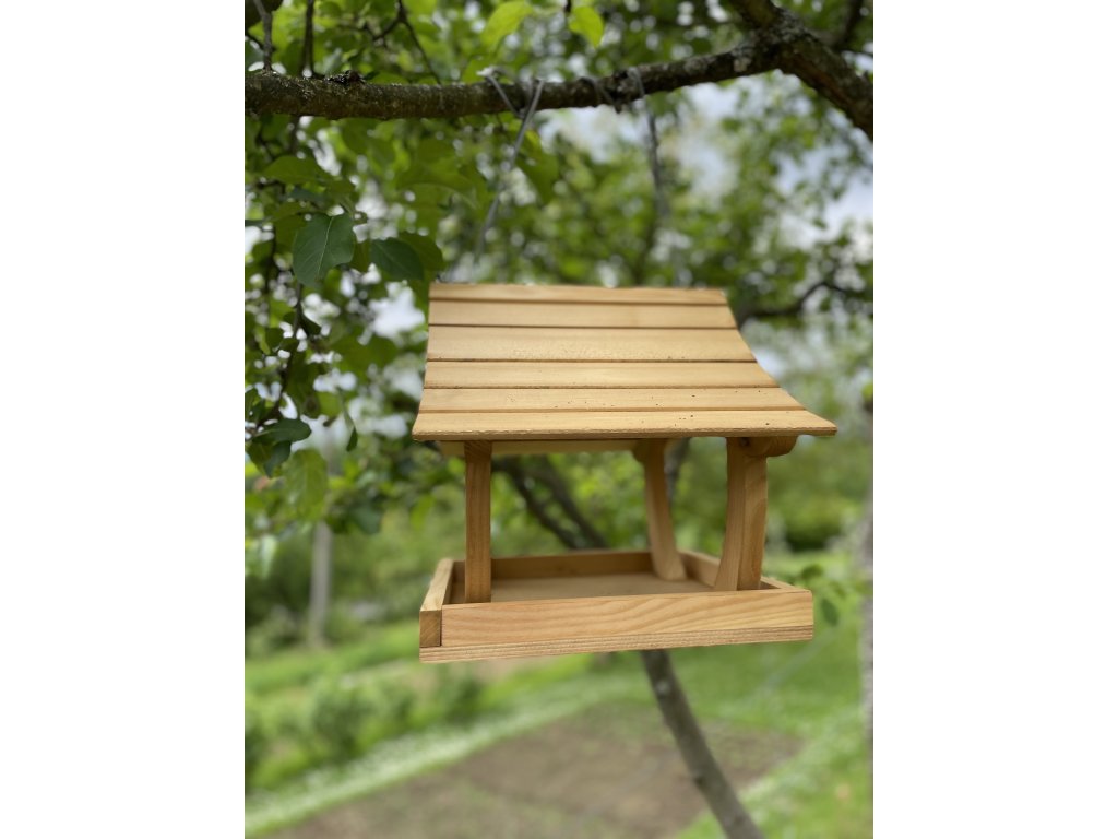 Svetlé drevené kŕmidlo pre vtáky je vyrobené z kvalitného smrekového dreva, ktoré vyniká prírodným vzhľadom, odolnosťou a stabilitou. Je navrhnuté tak, aby ochránilo krmivo pred dažďom a snehom a zároveň umožnilo jednoduchý prístup vtáčikom zo všetkých strán.