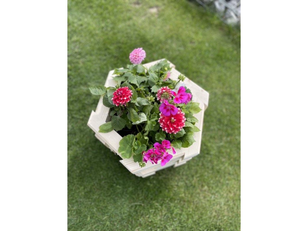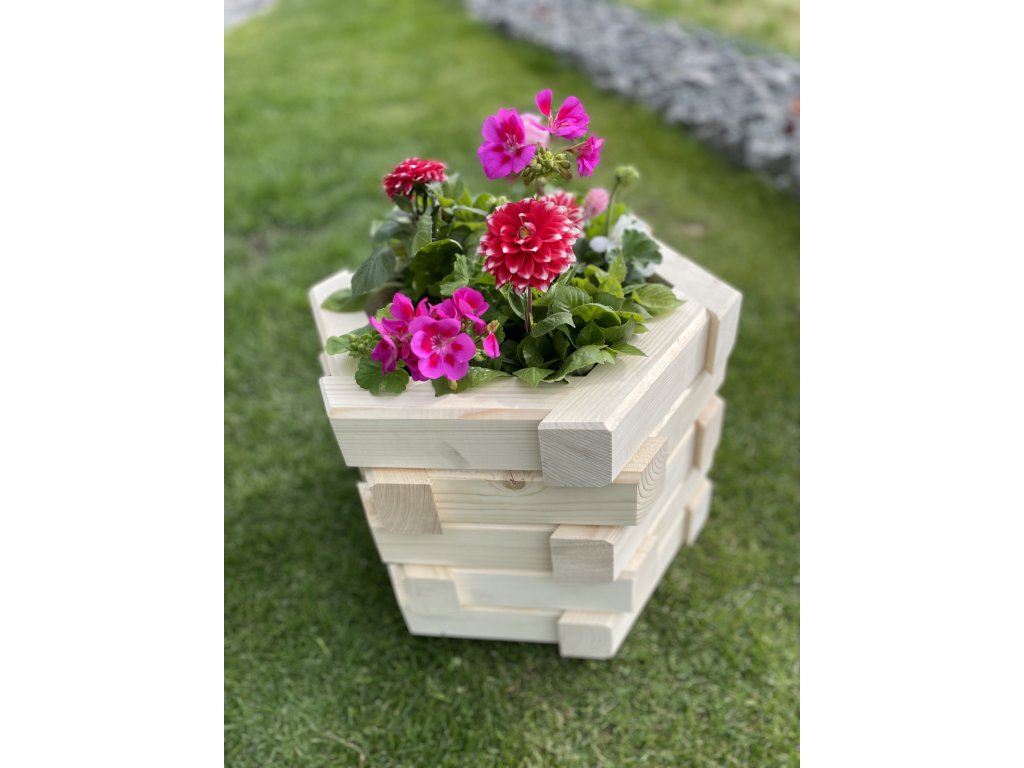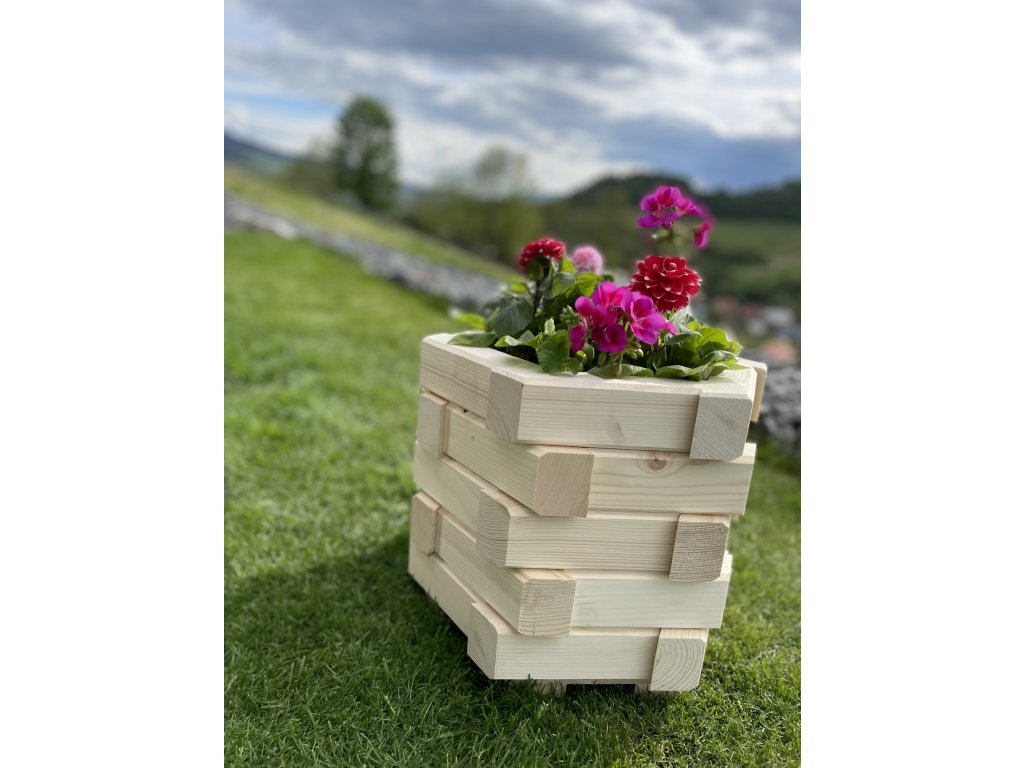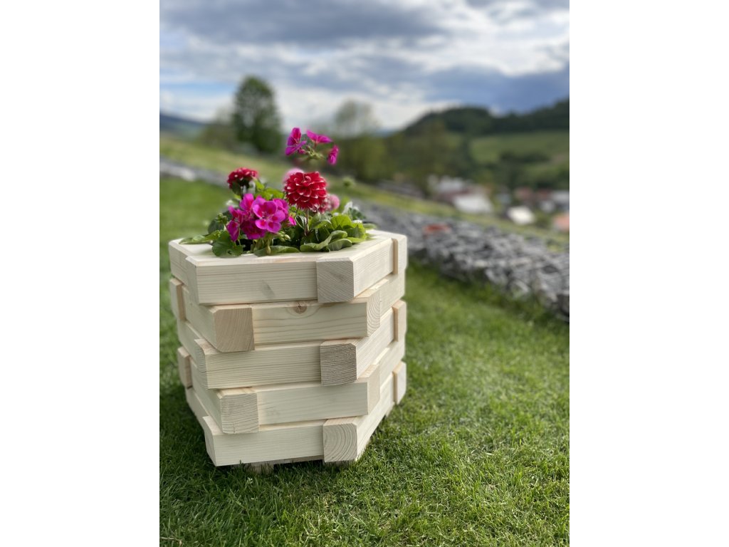 Dodajte svojej záhrade, terase či balkónu nádych originality a prírody s naším dreveným šesťuholníkovým kvetináčom. Vyrobený z kvalitného smrekového dreva, ručne opracovaný a ošetrený pre dlhú životnosť – tento geometrický kvetináč nie je len praktický, ale aj estetický prvok, ktorý ozvláštni každý priestor.