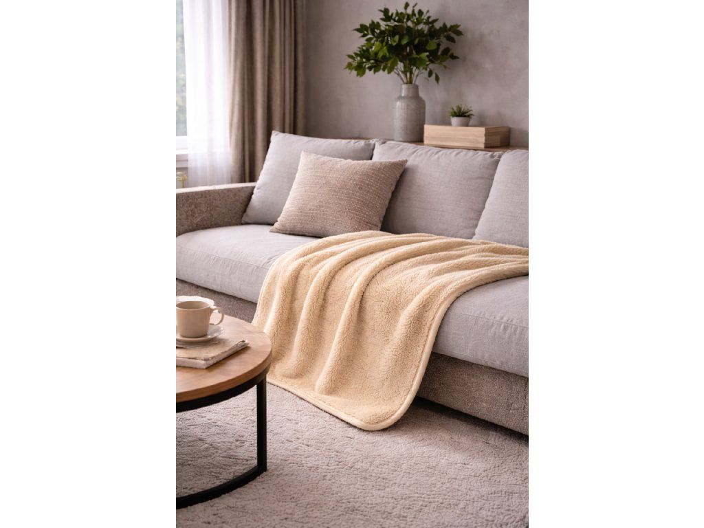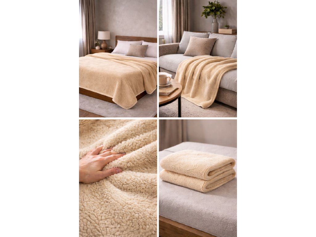 Dubbelzijdige deken van schapenwol – beige | Natuurlijke warmte van schapenwol