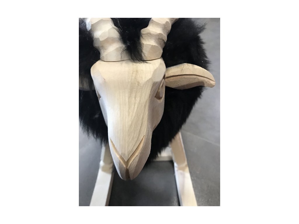 Hojdacia stolička Baran čierna je unikátna drevená hojdačka, ktorá zaujme nielen dizajnom, ale aj pohodlím. Vyrábaná ručne z kvalitného dreva a ovčej kože, stolička v tvare barana spája tradičné remeslo so štýlovým prevedením. Čierna farba dodáva stoličke moderný, nadčasový vzhľad, vďaka čomu skvele zapadne do každého priestoru.