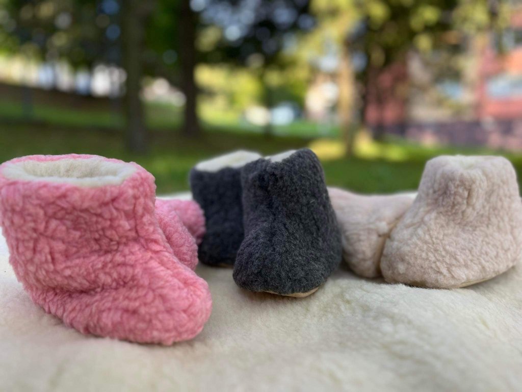 Die Pantoffeln haben eine rutschfeste Sohle, die sicheren Halt auf verschiedenen Oberflächen garantiert – ob zu Hause oder auf dem Spielplatz. Das weiche Wollmaterial umschließt den Fuß sanft und sorgt für Komfort auch bei längerem Tragen.