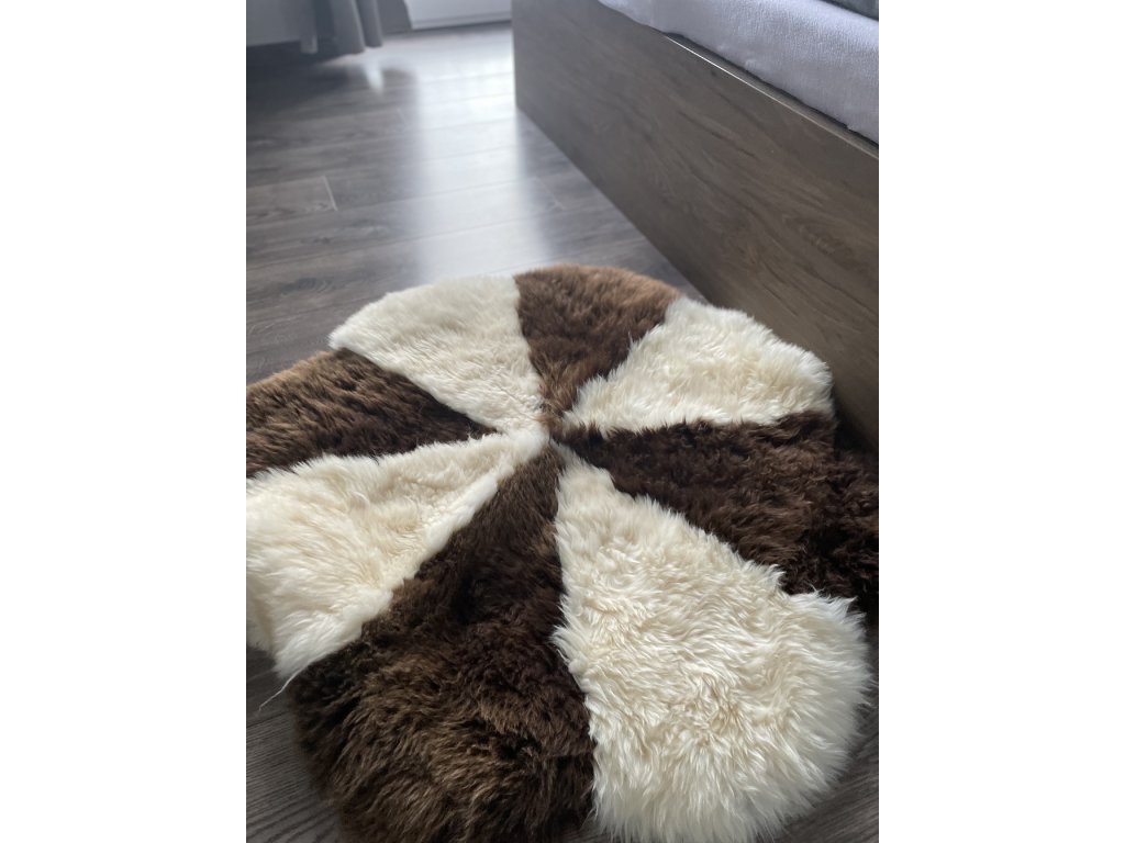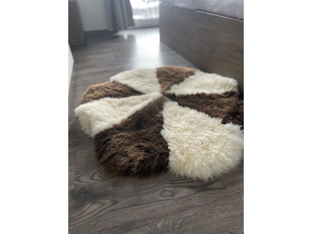 Luxusný koberec z ovčej kožušiny – hnedo-biely kruh pre teplo a štýl vášho domova