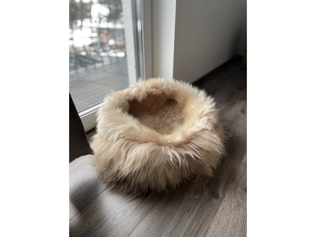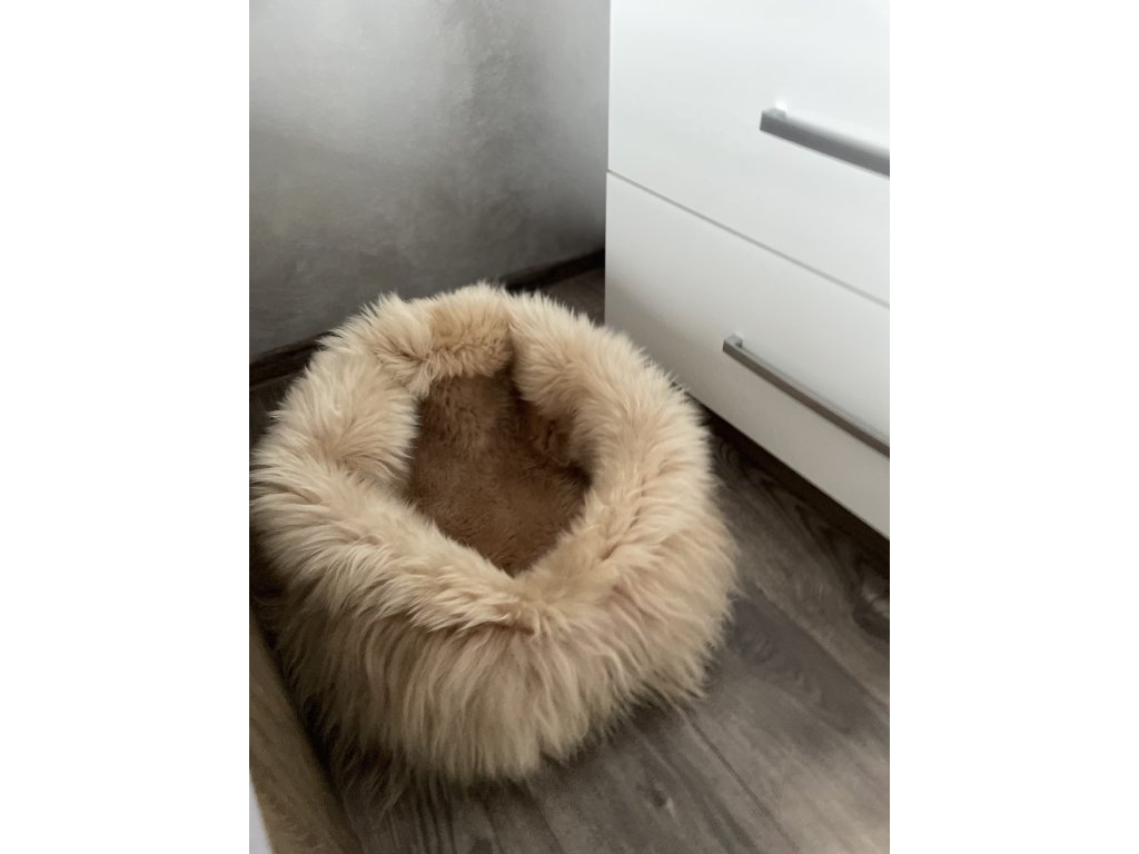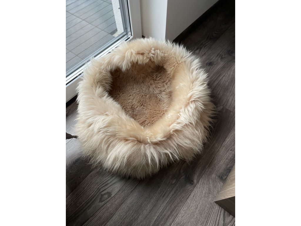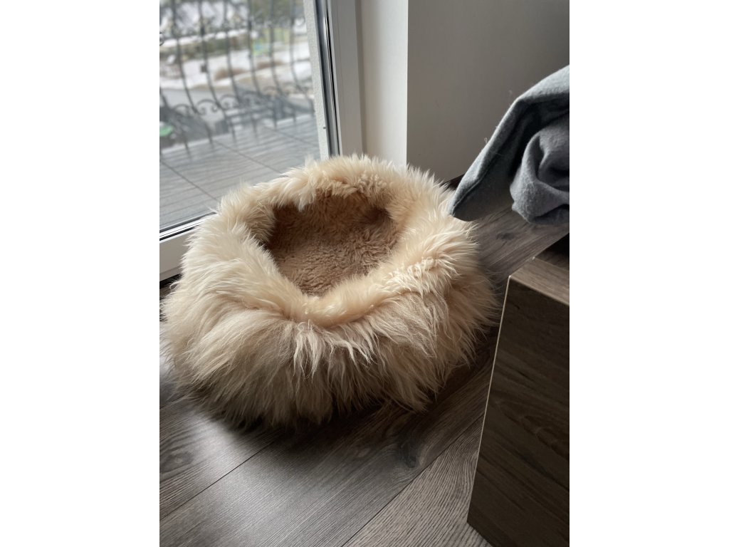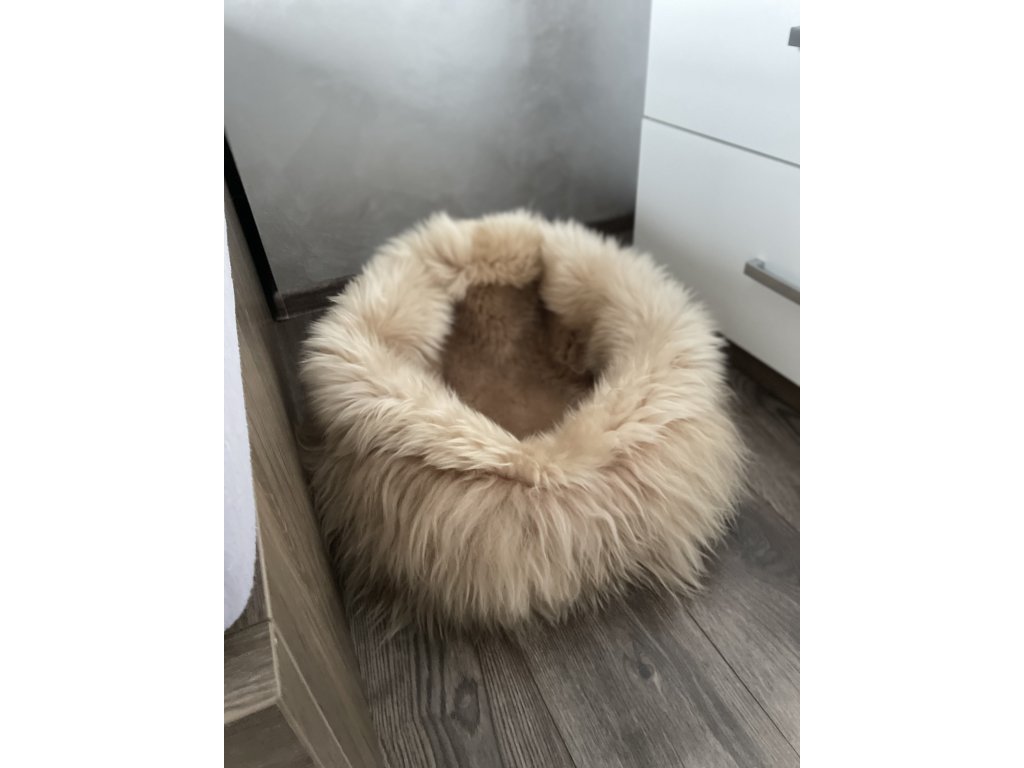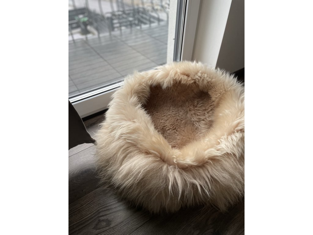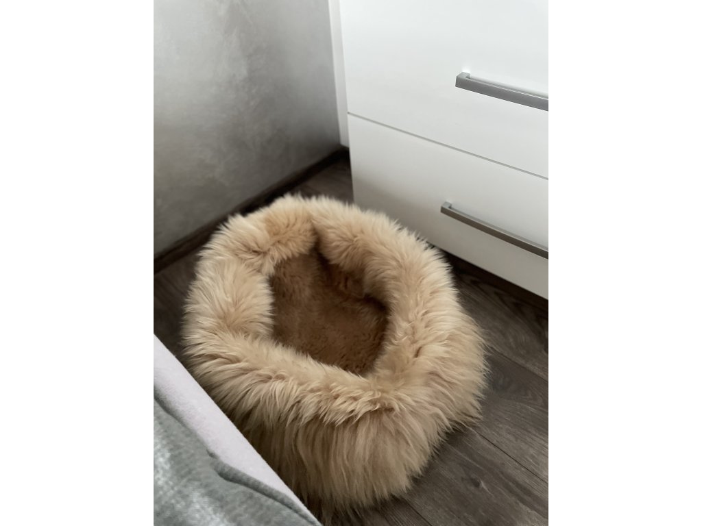 Doprajte svojmu štvornohému miláčikovi luxusné miesto na oddych. Tento kožušinový pelech v béžovej farbe s priemerom 60 cm je ideálny pre malých až stredne veľkých psov či mačky. Vďaka prírodnej ovčej kožušine poskytuje výnimočné teplo, pohodlie a zdravotné benefity – počas celého roka.
