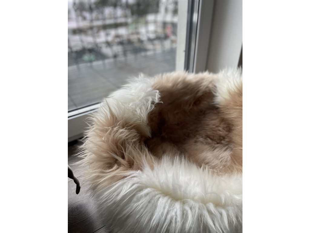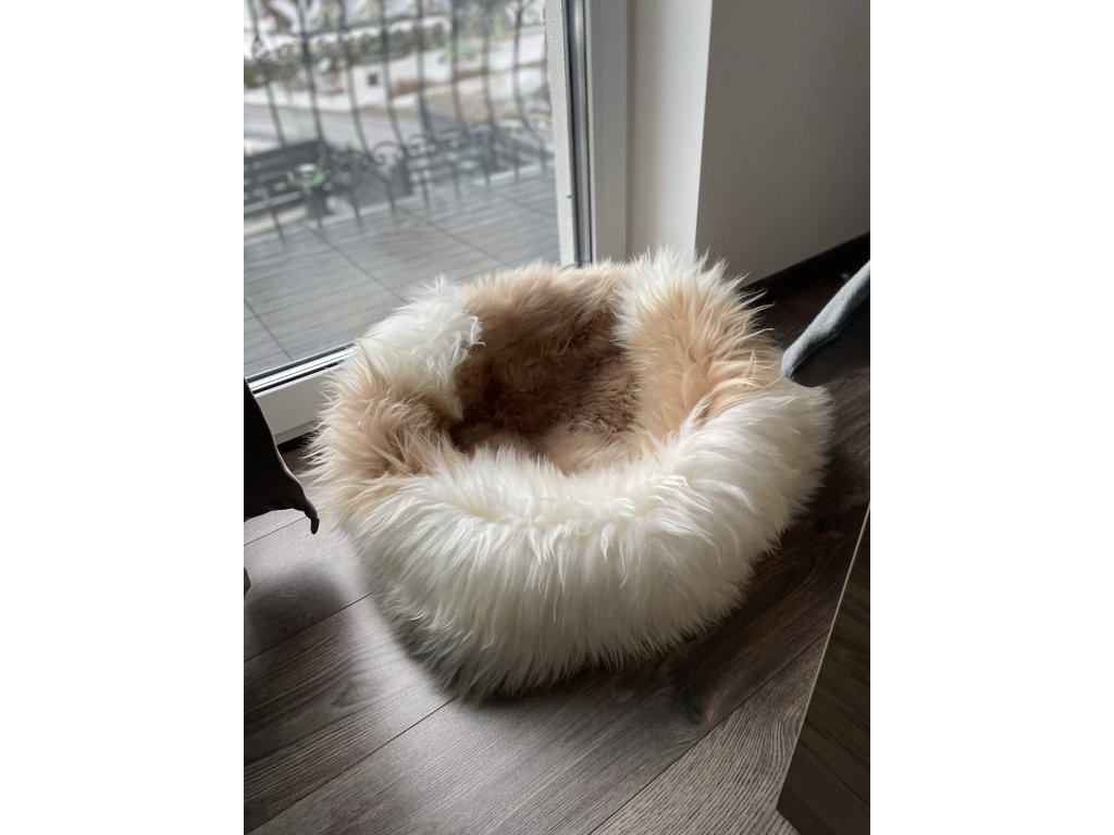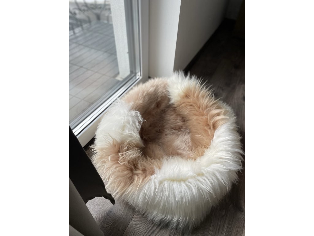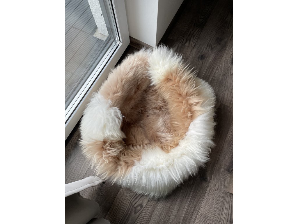 Doprajte svojmu štvornohému miláčikovi luxusné miesto na oddych. Tento kožušinový pelech v béžovej farbe s priemerom 60 cm je ideálny pre malých až stredne veľkých psov či mačky. Vďaka prírodnej ovčej kožušine poskytuje výnimočné teplo, pohodlie a zdravotné benefity – počas celého roka.