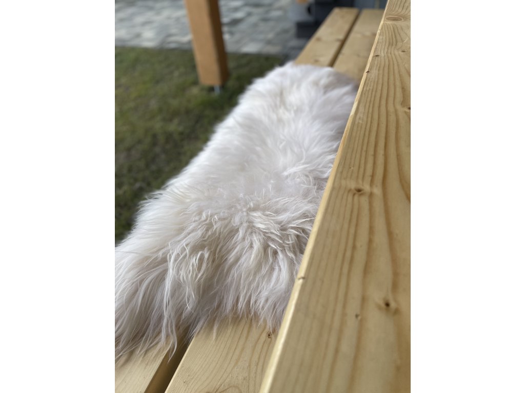 Ovčia kožušina islandská ovca biela vyniká svojou hustou, nadýchanou srsťou a prirodzenou krásou – skvelý doplnok pre štýlové a útulné bývanie.