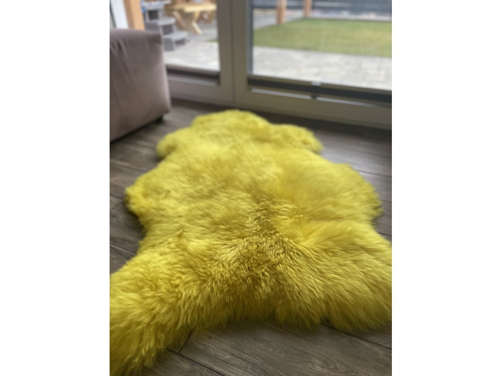 Ovčia kožušina žltá rozžiari každý priestor optimizmom a teplom – ideálna voľba na oživenie interiéru veselým a výrazným akcentom.
