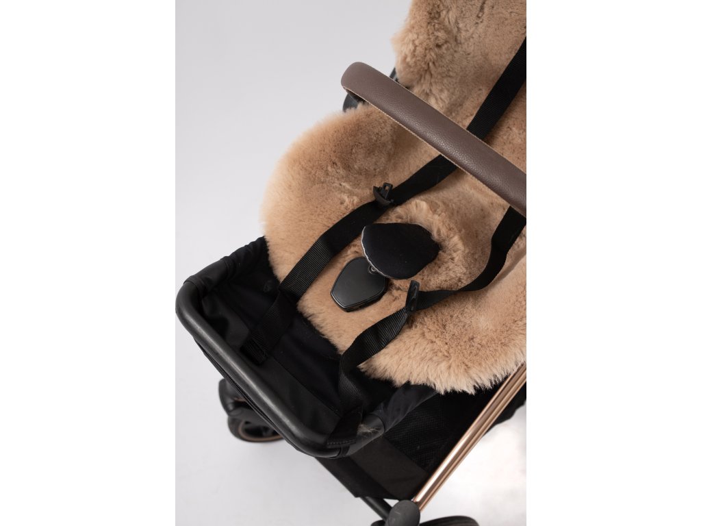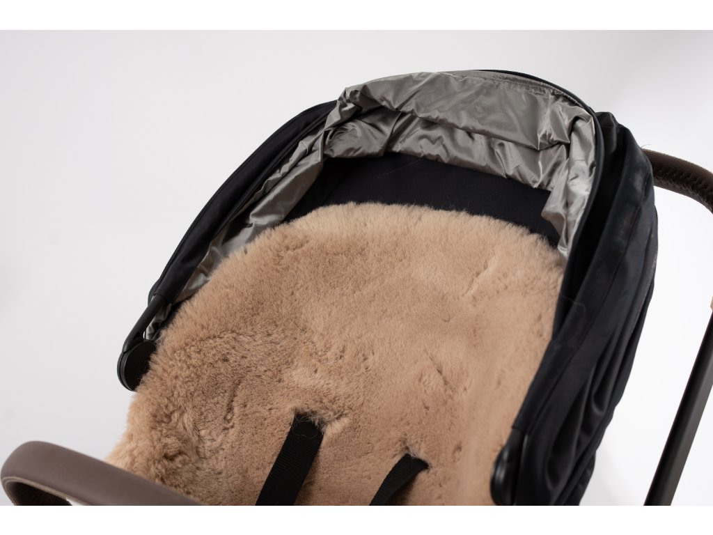 Pravá ovčia koža: Prírodný materiál, ktorý prirodzene reguluje teplotu a zabezpečuje optimálnu cirkuláciu vzduchu – dieťa tak zostáva v suchu a teple bez prehriatia.
