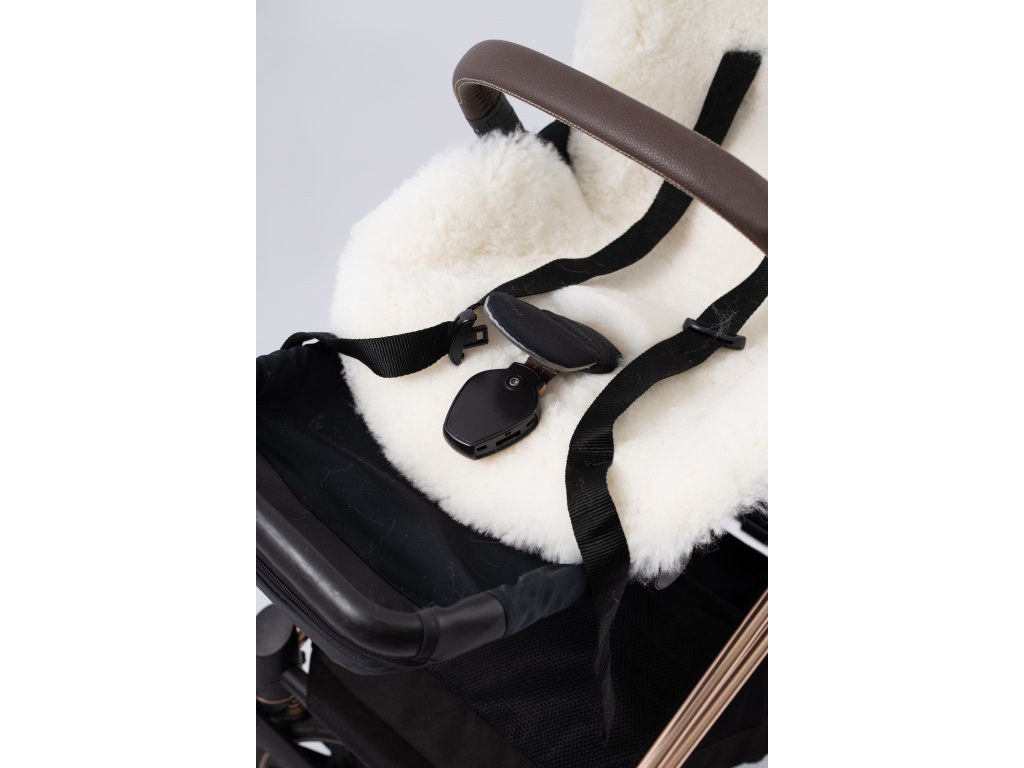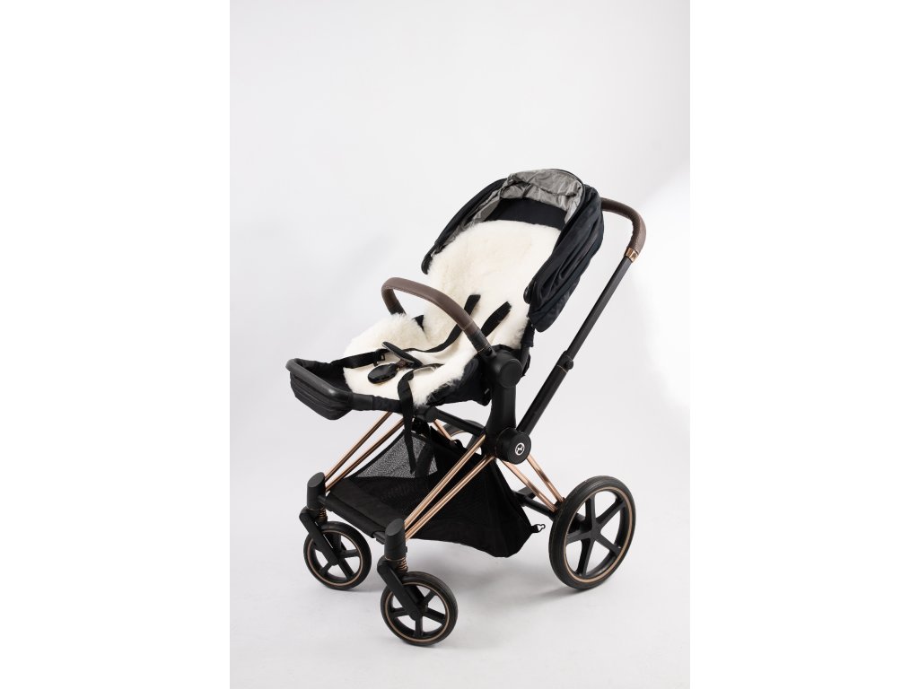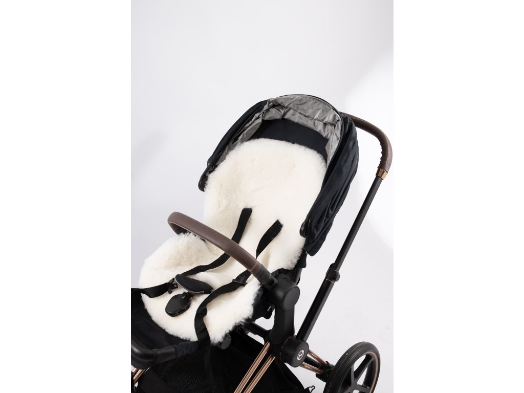 Pravá ovčia koža: Prírodný materiál, ktorý prirodzene reguluje teplotu a zabezpečuje optimálnu cirkuláciu vzduchu – dieťa tak zostáva v suchu a teple bez prehriatia.