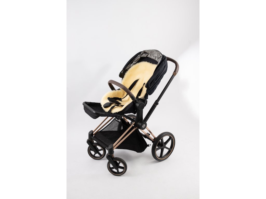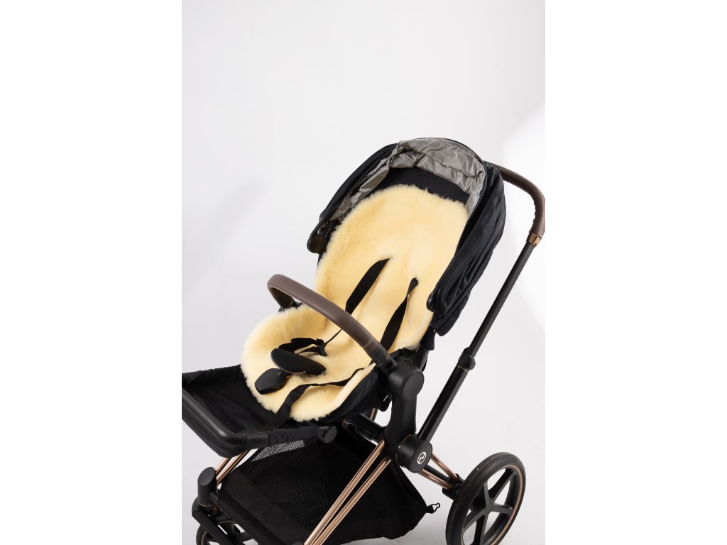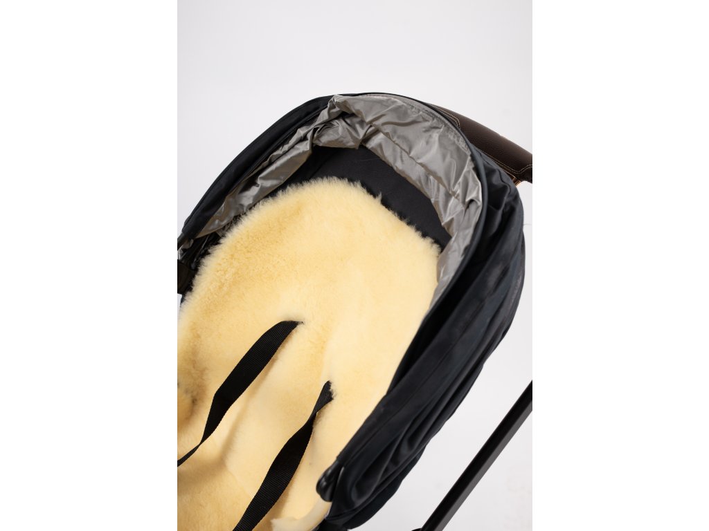 Pravá ovčia koža: Prírodný materiál, ktorý prirodzene reguluje teplotu a zabezpečuje optimálnu cirkuláciu vzduchu – dieťa tak zostáva v suchu a teple bez prehriatia.