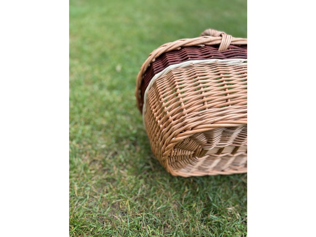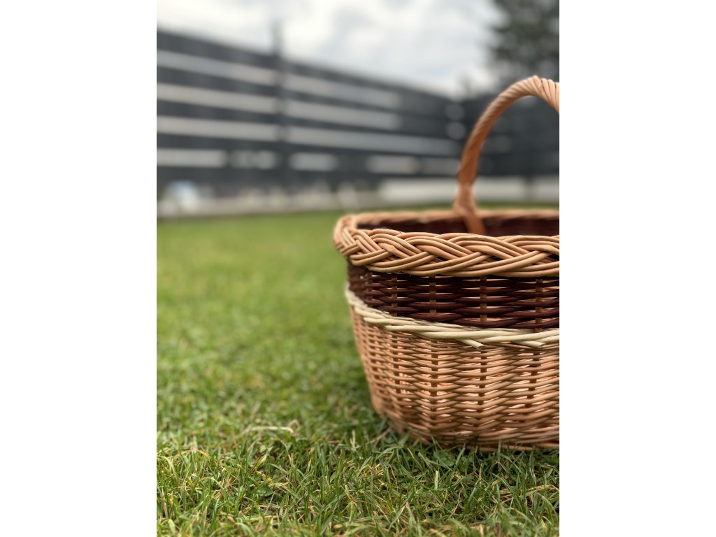 🧺 Prútený košík s hnedým lemom – tradičný doplnok s eleganciou