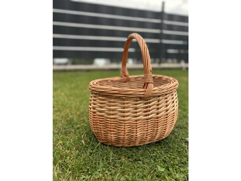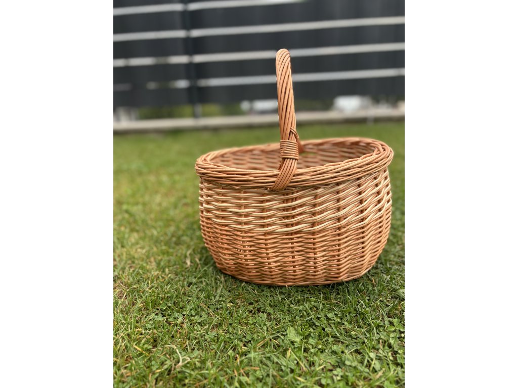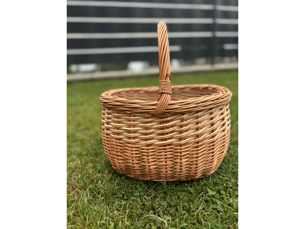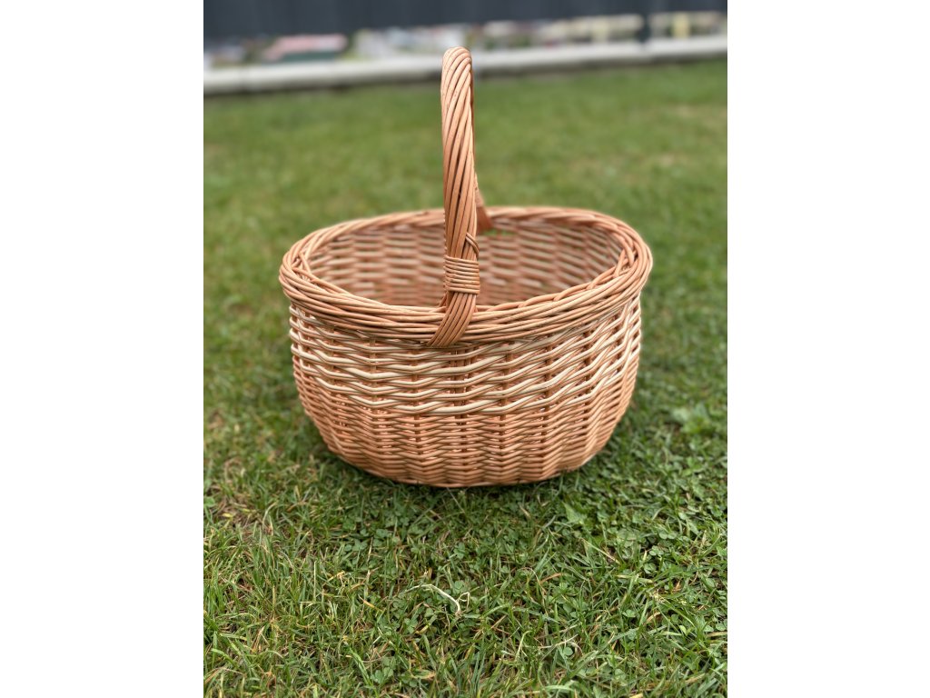 Tento prútený košík je nádherným príkladom spojenia prírodných materiálov, ručnej práce a praktického dizajnu. Vyrobený z kvalitného prútia, je ideálny na každodenné využitie doma aj vonku – ako úložný košík, dekorácia, košík na nákupy, darčekový obal či piknikový pomocník.