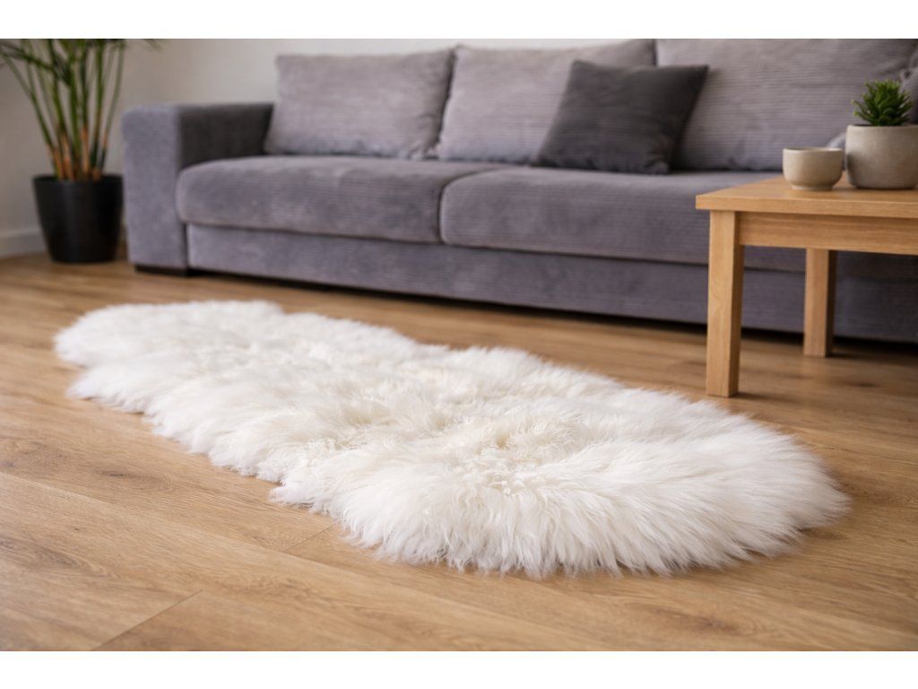 De double wit schapenvacht biedt een extra dikke laag zachte wol voor maximaal comfort en warmte. Ideaal als stijlvol en praktisch accessoire voor een fauteuil, bed of bank.