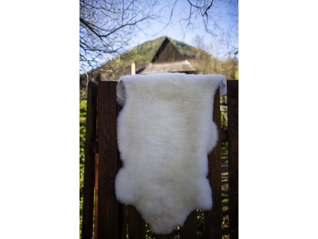 De wit schapenvacht straalt een zuivere en elegante uitstraling uit en is ideaal voor Scandinavisch ingerichte interieurs.