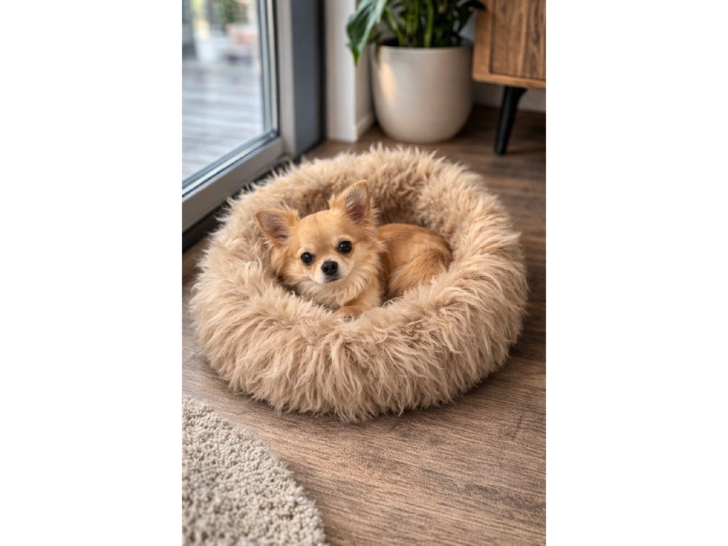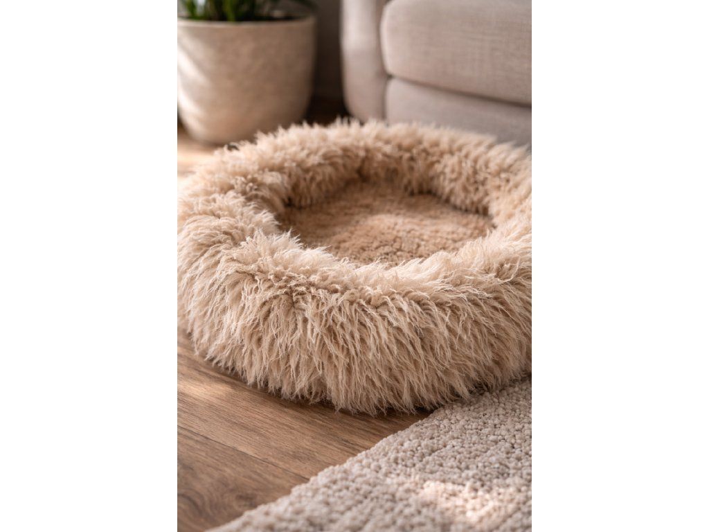 Gun uw viervoeter een luxueuze plek om te ontspannen. Deze schapenvachtmand in beige met een diameter van 60 cm is ideaal voor kleine tot middelgrote honden en katten. Dankzij het natuurlijke schapenvacht biedt de mand uitzonderlijke warmte, comfort en gezondheidsvoordelen – het hele jaar door.