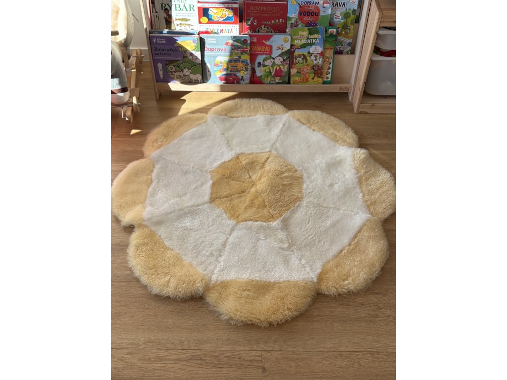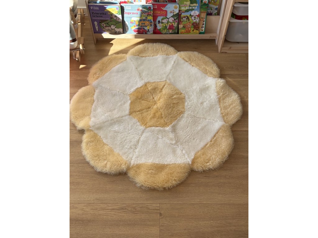 🌸 Tapijt bloem geel van schapenvacht – zachtheid en speelsheid voor uw kind 🌸