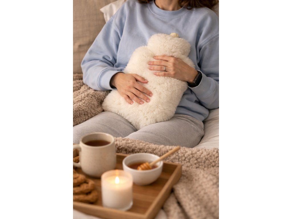 Winter, buikpijn, krampen of behoefte aan ontspanning? Deze warmwaterkruik met schapenvachthoes combineert het effect van een klassieke warmtekompres met de natuurlijke bescherming van schapenvacht.