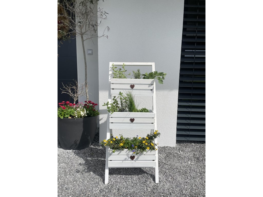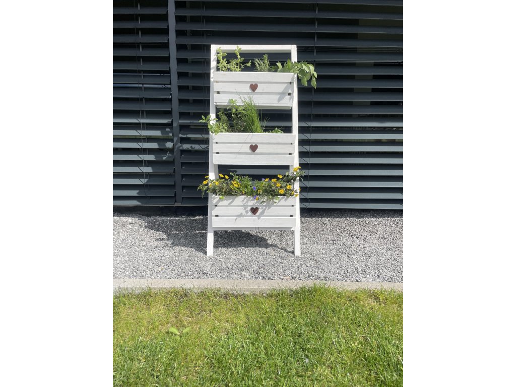 Dodajte svojmu exteriéru nový dych s týmto krásnym bielym záhradným kvetináčom z dreva! Tento rustikálny kvetináč je dokonalým spojením štýlu a funkčnosti – vyrobený z kvalitného dreva, natretý do jemnej bielej farby, ktorá pôsobí čisto, romanticky a nadčasovo. Ideálny na pestovanie kvetov, byliniek alebo ako dekoratívny prvok v každom ročnom období. 🌼