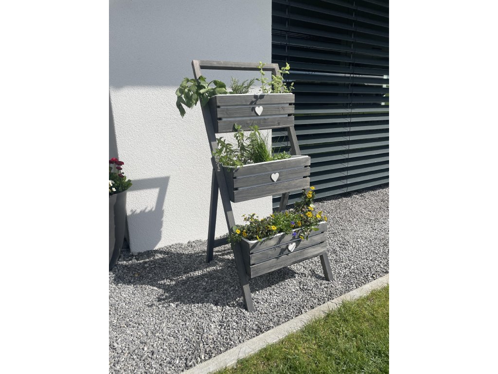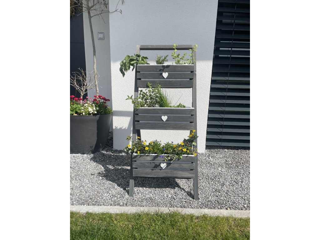Tento sivý drevený záhradný kvetináč je viac než len praktická nádoba – je to dekorácia, ktorá vnesie do vašej záhrady alebo terasy nádych pokoja a elegancie. 💐 V kombinácii s farebnými kvetmi vytvára nádherný kontrast a pritiahne pozornosť každého návštevníka. Či už ho postavíte pred dom, pod pergolu alebo na balkón, vždy vytvorí harmonickú atmosféru.