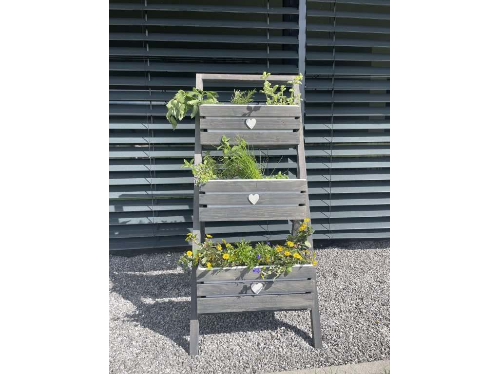 Dodajte svojmu exteriéru nový dych s týmto krásnym sivý záhradným kvetináčom z dreva! Tento rustikálny kvetináč je dokonalým spojením štýlu a funkčnosti – vyrobený z kvalitného dreva, natretý do jemnej bielej farby, ktorá pôsobí čisto, romanticky a nadčasovo. Ideálny na pestovanie kvetov, byliniek alebo ako dekoratívny prvok v každom ročnom období. 🌼