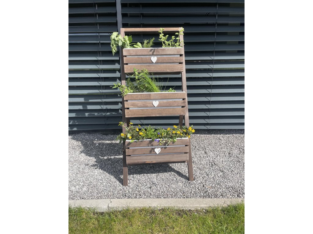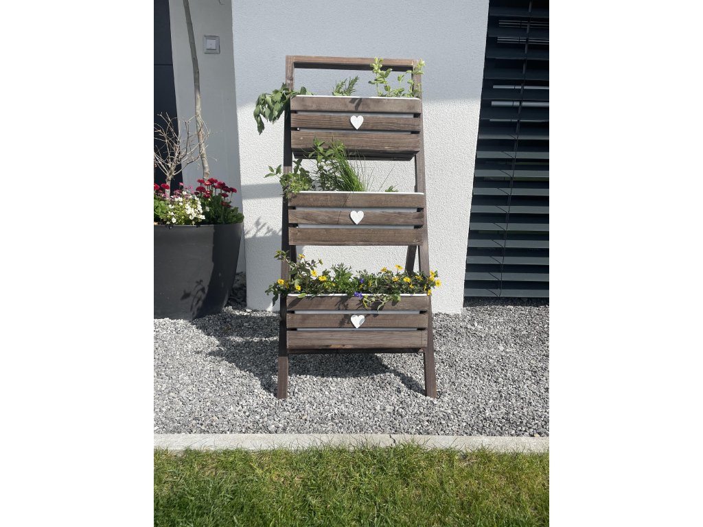 Dodajte svojmu exteriéru nový dych s týmto krásnym tmavo hnedým záhradným kvetináčom z dreva! Tento rustikálny kvetináč je dokonalým spojením štýlu a funkčnosti – vyrobený z kvalitného dreva, natretý do jemnej bielej farby, ktorá pôsobí čisto, romanticky a nadčasovo. Ideálny na pestovanie kvetov, byliniek alebo ako dekoratívny prvok v každom ročnom období. 🌼