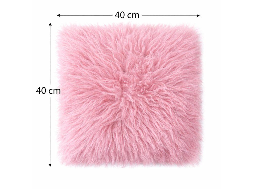 Ervaar uitzonderlijk comfort en elegantie met dit roze kussen gemaakt van echte schapenvachtleer. Het combineert luxe uitstraling met natuurlijke thermoregulerende eigenschappen en is ideaal voor stoelen, banken of brede zitplaatsen.